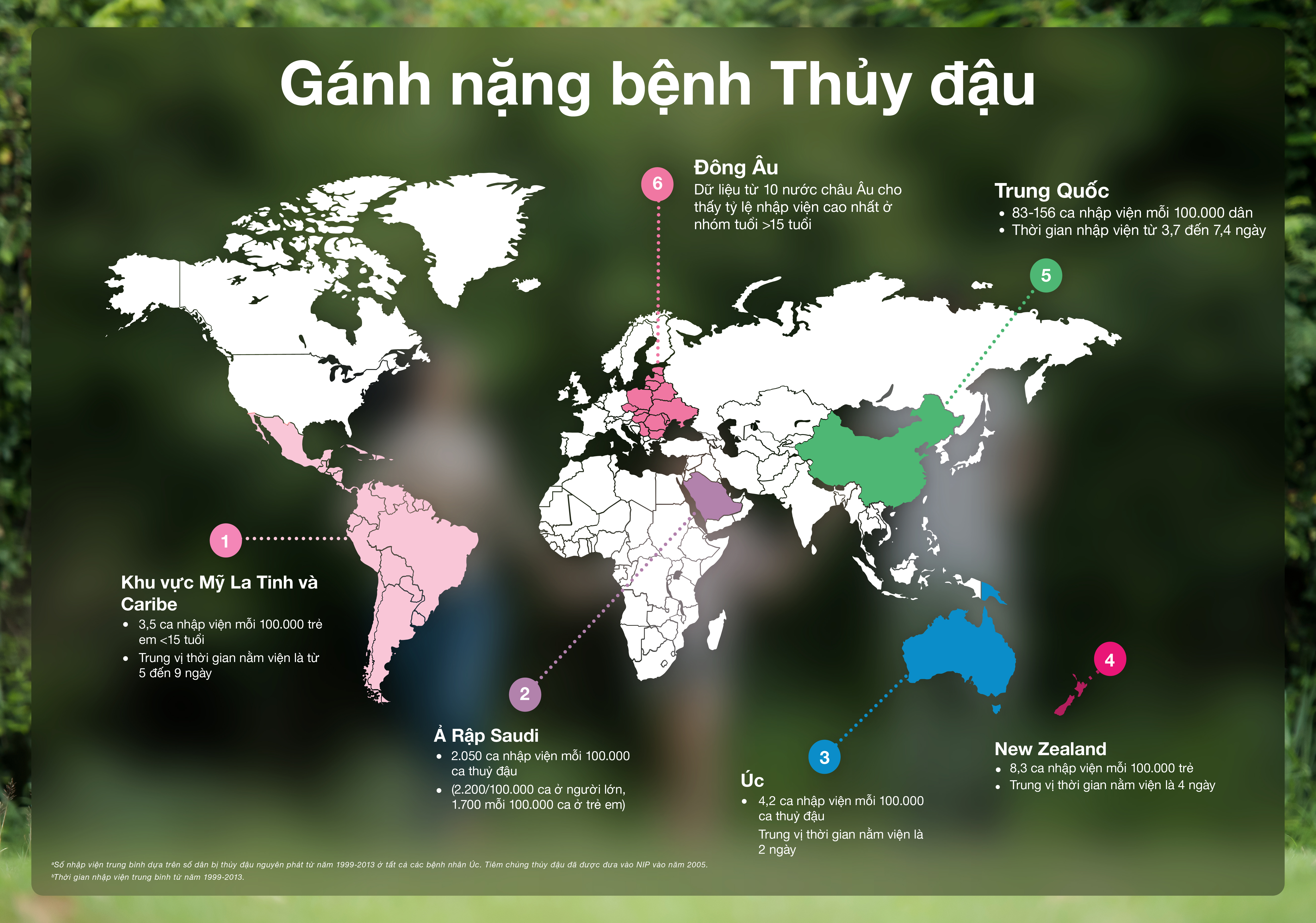 Tại Úc, một phân tích so sánh giai đoạn sau tiêm chủng (2007-2013) với giai đoạn trước (1999-2004) cho thấy tỷ lệ nhập viện do Thủy đậu đã giảm lần lượt là 67% và 84% ở nhóm trẻ 18 tháng tuổi và dưới 18-59 tháng tuổi7. Số ca tử vong do Thủy đậu ở người dưới 40 tuổi cũng giảm đáng kể trong giai đoạn sau tiêm chủng này7.